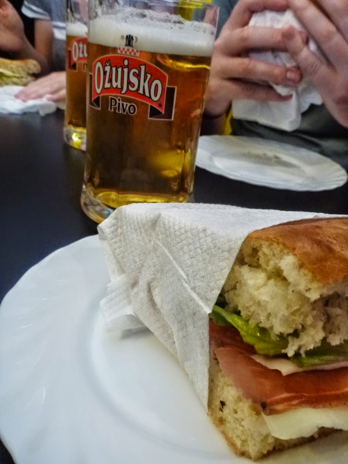 The next morning never really was and it was early arvo when we were heading into the Old Town for a much hyped sandwich at Buffet Skola. A simple pršut with cheese and salad wrapped in a thick, cake-like thickness focaccia.